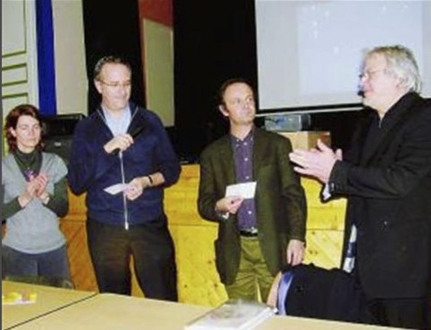 La remise des chèques avec de gauche à droite : Nathalie BERAUD (la sœur d’Anthony), le docteur Nicolini, le professeur BERTRAND et le président Patrick TORRES CLIQUOT
