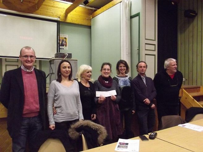 En fin de soirée, Patrick Torrès-Cliquot, président du Défi Anthony, a remis le chèque de 35.023,53 €, totalité de l'argent récolté en 2014, au profit de la recherche contre la leucémie.